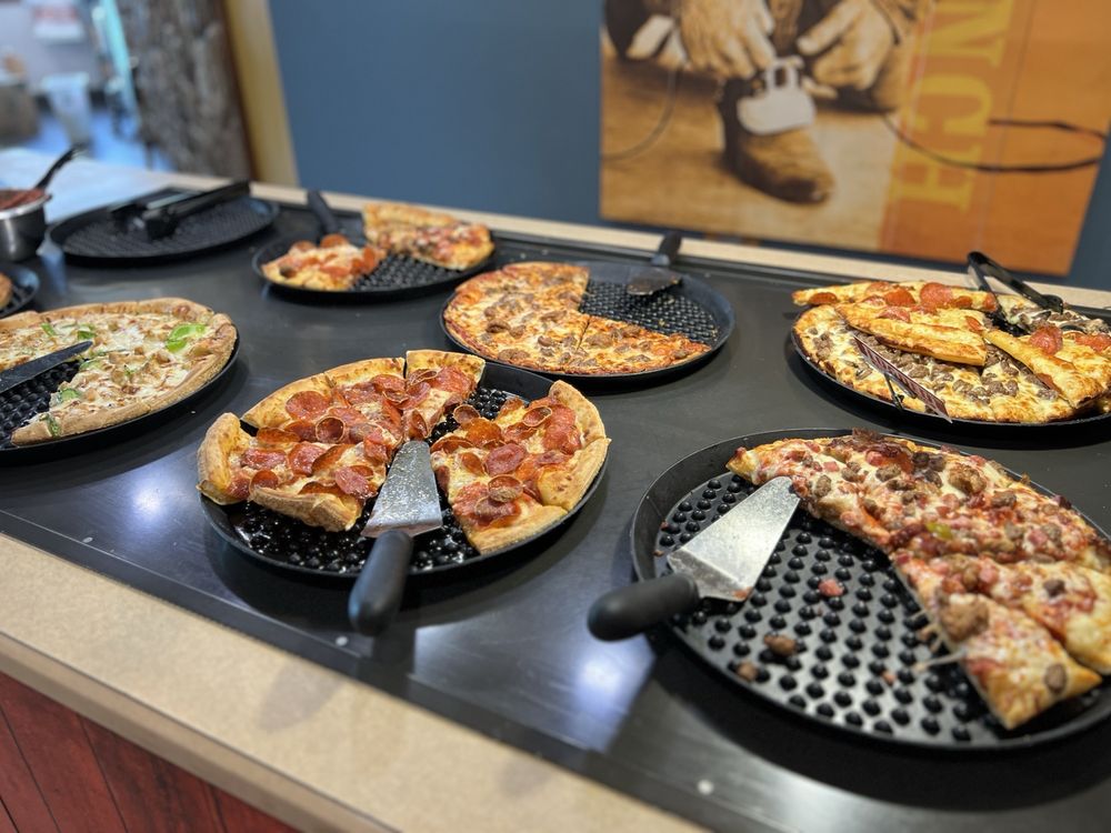 Well-loved by customers, the buffet features fresh offerings, including crispy fried chicken and a vibrant salad bar. One diner praised the BBQ Chicken Pizza while others raved about the delectable Blueberry Dessert Pizza and creamy soft serve ice cream. The friendly staff ensures a comfortable dining experience, making it a must-visit for pizza aficionados.